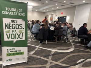 Mais le dialogue ne s’arrête pas là. Depuis le 1er décembre, le sondage provincial Nos négos, ma voix est en cours, jusqu’au 14 décembre. Il s’agit d’une occasion unique pour chaque membre de faire entendre sa voix et d’exprimer ses priorités en vue des prochaines négociations collectives de 2026.